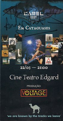Vamos por partes. Andy Latimer, para quem entende de rock progressivo, é um dos nomes mais queridos e importantes da história do gênero. Guitarrista, flautista, vocalista principal e único membro permanente do grupo “Camel”, ele é uma lenda viva da música, embora não seja tão famoso quanto outros que tiveram mais sucesso nas paradas. Andy Latimer esteve em turnê no Brasil no ano 2001 e uma das paradas da turnê foi em Cataguases. Sim, você leu certo. Cataguases recebeu um show de um dos maiores grupos de rock progressivo de todos os tempos, lá no Cine Edgard. E eu entrevistei Andy Latimer. Se você consegue acreditar que o Camel esteve em Cataguases, talvez consiga crer que eu fiz mesmo a entrevista.
